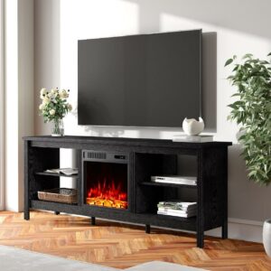TV Stand for 75 inch TV with Electric Fireplace for Living Room, Black Entertainment Center with 4 Storage for 75 inch TV for Bedroom, 70 inch