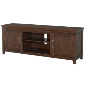 TV Stand with 2 Cabinets and 2 Cubbies, Dark Brown- Saltoro Sherpi