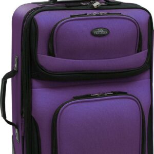 U.S. Traveler Rio Rugged Fabric Expandable Rolling Carry-on Luggage Set w/ Tote, Purple, 2-Piece (21/10)