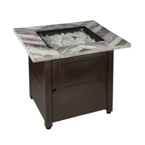 Uniflame Duvall 30″ Square Printed Faux Wood Mantel LP Gas Patio Fire Pit