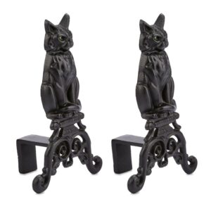 UniFlame Black Cast Iron Cat Andirons with Reflective Glass Eyes