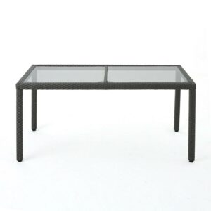 Union Outdoor Wicker Rectangular Dining Table with Tempered Glass Top, Grey