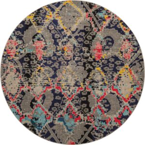 Unique Loom Indoor Round Southwestern Modern Area Rugs Blue/Red/Gray, 8′ 0 x 8′ 0 Round