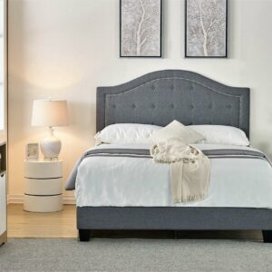 Upholstery Full Size Platform Bed with 4 Drawers for Kids Room, Gray