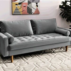 US Pride Furniture Matsuko Velvet 70″ Square Arm Polyester Sofa, Gray