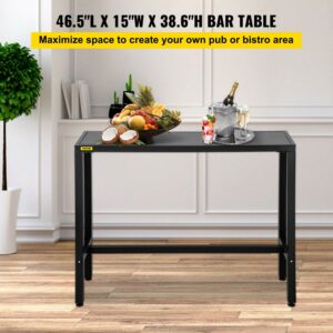 VEVOR 36.5″ x 15″ Rectangular Metal Patio Bar Table with Adjustable Feet and MDF Top, Black