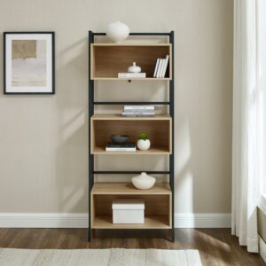 Walker Edison Contemporary 64″ Metal and Wood 3-Cubby Bookshelf, Coastal Oak