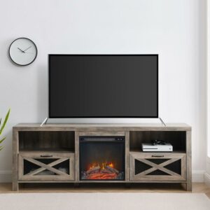 Walker Edison Farmhouse Fireplace TV Stand for TVs up to 80″, Grey Wash
