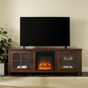 Walker Edison Farmhouse Fireplace TV Stand for TVs up to 80″, Dark Walnut