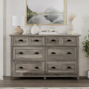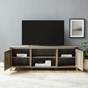 Walker Edison Farmhouse Grooved Door TV Stand for TVs up to 80″, Grey Wash