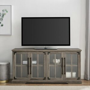 Walker Edison Farmhouse 4-Door TV Stand for TVs up to 65″, Grey Wash