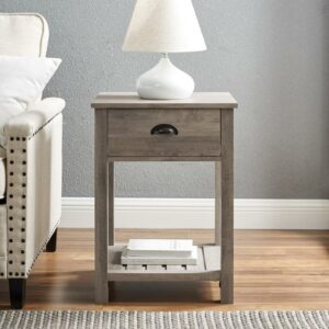 Walker Edison Farmhouse Single Drawer Open Shelf End Table, Grey Wash