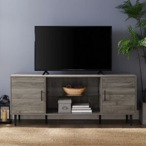 Walker Edison Mid Century 2-Door TV Stand for TVs Up to 68″, Slate Grey