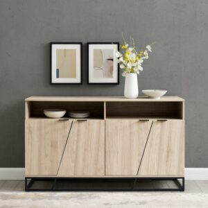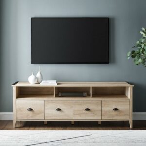 Walker Edison Industrial Farmhouse TV Stand for TVs up to 80″, White Oak