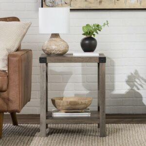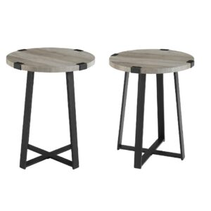 Walker Edison Industrial Faux-Wrap Round Side Tables, Set of 2, Grey Wash