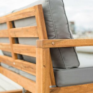 Walker Edison Hudson Acacia Wood Patio Love Seat with Gray Cushions in Brown