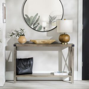Walker Edison Magnolia Metal X Console Table, Gray Wash