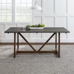 Walker Edison Modern Solid Wood Trestle Dining Table, Grey/Brown