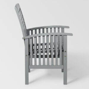 Walker Edison Outdoor Dining Chair – Acacia Wood – Set of 2 – with Cushion – Grey