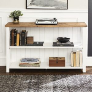 Walker Edison Modern Farmhouse Solid Wood Storage Console Table, White/Reclaimed Barnwood