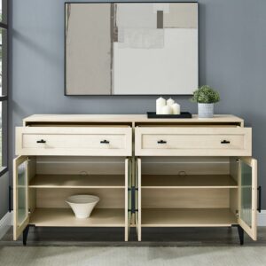 Walker Edison Transitional Sideboard with 4 Fluted Glass Doors, Birch