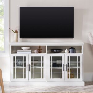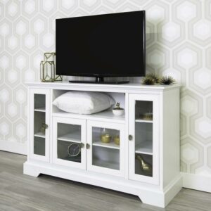 Walker Edison Transitional Highboy Glass Door Wood TV Stand for TVs up to 60″, White