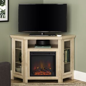 Walker Edison White Oak Corner Fireplace TV Stand for TVs up to 55″