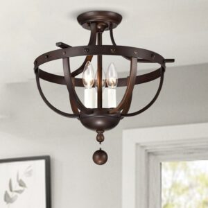 Warehouse of Tiffany Bopelo Faux Wood Grain Metal 3-Light Semi-Flush Ceiling Lamp