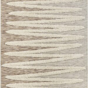 Well Woven Bellagio Brigida Coastal Geometric Stripes Beige 7’10” x 10’6″ High-Low Flat-Weave Area Rug