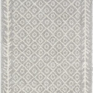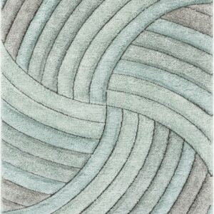 Well Woven Lolly Kenzo Retro Geometric Pattern Grey Light Blue 3’11” x 5’3″ 3D Texture Shag Area Rug
