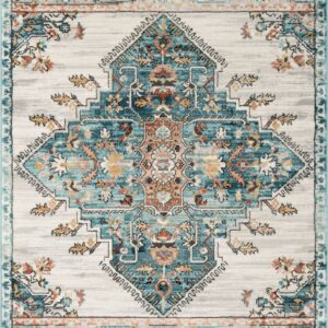 Well Woven Indira Manor Vintage Bohemian Medallion Oriental Blue 5’3″ x 7’3″ Area Rug