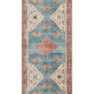 Well Woven Lotus Towne Terra Blue Vintage Medallion Persian 2’7″ x 9’10” Runner Machine Washable Flat-Weave Area Rug