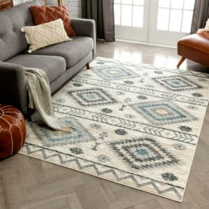 Well Woven Malfi Prato Blue Tribal Southwestern Geometric 5’3″ x 7’3″ Distressed Area Rug