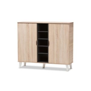 Baxton Studio Adelina Mid-Century Modern 2-Door Oak and Gray Wood Shoe Cabinet
