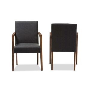 Baxton Studio Andrea Mid-Century Modern Dark Grey Upholstered Wooden Armchair (Set of 2)