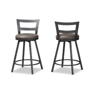 Baxton Studio Arjean Rustic and Industrial Grey Faux Leather Upholstered Pub Stool Set