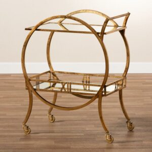 Baxton Studio Arsene Antique Gold Finished 2-Tier Mobile Bar Cart