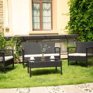 Westin Furniture Madison Outdoor 4-Piece Rattan Patio Furniture Chat Set Black/Beige
