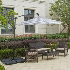 Westin Outdoor 10 Ft Solar LED Patio Cantilever Umbrella, Black/White Stripe