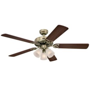 Westinghouse Vintage Antique Brass Indoor 52″ Ceiling Fan with Light Kit