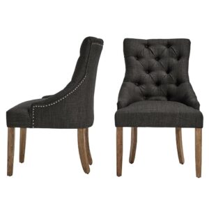 Weston Home Chelsea Lane Curved Back Linen Tufted Dining Chair, Set of 2, Dark Gray