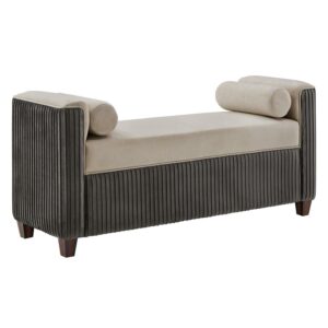 Weston Home Bergman Chesterfield Pleated Velvet 54″ Wide Bench with Pillows, Taupe and Grey
