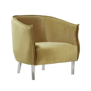 Weston Home Eldridge Velvet Upholstered Barrel Accent Chair with Clear Acrylic Legs, Gold