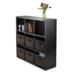 Winsome Wood Timothy 3×3 Black Storage Shelf with 6 Foldable Chocolate Fabric Baskets