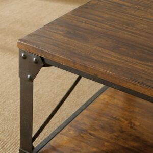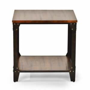 Winston Square End Table Distressed Tobacco Brown Top and shelf in Metal frame