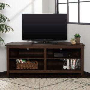 Woven Paths Farmhouse Corner TV Stand for TVs up to 65″, Espresso
