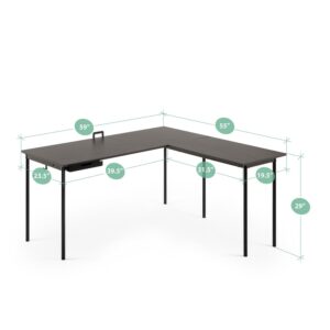 Zinus Dominic 59 Black Frame Metal Corner Desk with Storage Drawer, Espresso Top