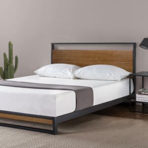 Zinus Suzanne 37″ Metal and Wood Platform Bed with Headboard, Chestnut Brown, King