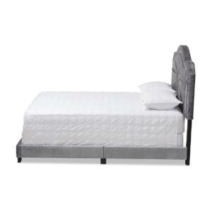 Baxton Studio Embla Modern and Contemporary Grey Velvet Fabric Upholstered Queen Size Bed