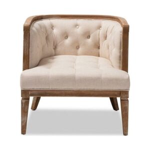 Baxton Studio Esme French Provincial Beige Linen Fabric Upholstered and White-Washed Oak Wood Accent Barrel Chair